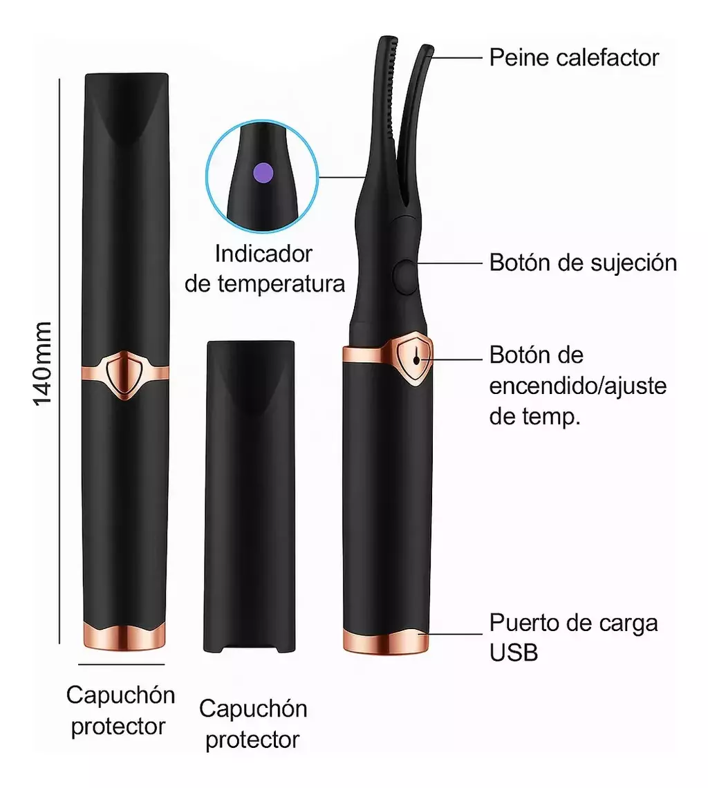 Resalta la belleza de tu mirada con el Arqueador de Pestañas Eléctrico USB. Su doble cabezal térmico se adapta a tus pestañas, logrando un rizado perfecto y duradero que realza tu expresión. Ligero y fácil de usar, simplifica tu rutina de maquillaje, ofreciendo resultados profesionales en cualquier momento y lugar. Recargable vía USB, evita pilas desechables y asegura comodidad y practicidad. Ideal para quienes buscan volumen, definición y un acabado sofisticado sin esfuerzo.