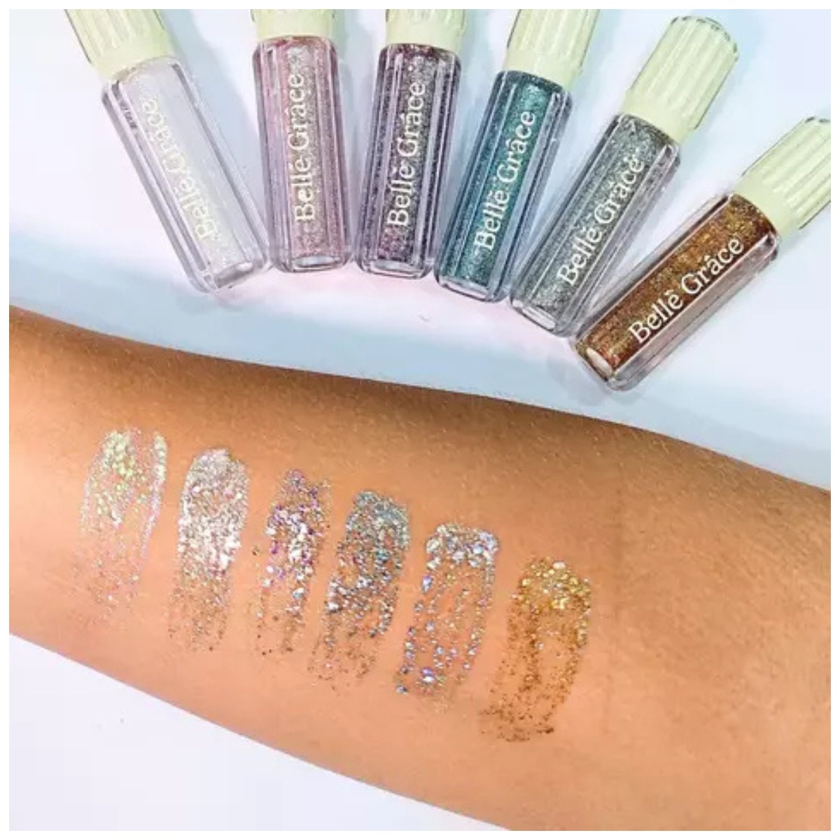 ¡Logra una mirada deslumbrante en segundos! Esta Sombra Líquida de Belle Grace, está cargada de glitter de alto impacto, proporcionando un brillo intenso y una aplicación sin esfuerzo. Su fórmula líquida es de secado rápido, minimizando la caída del glitter.